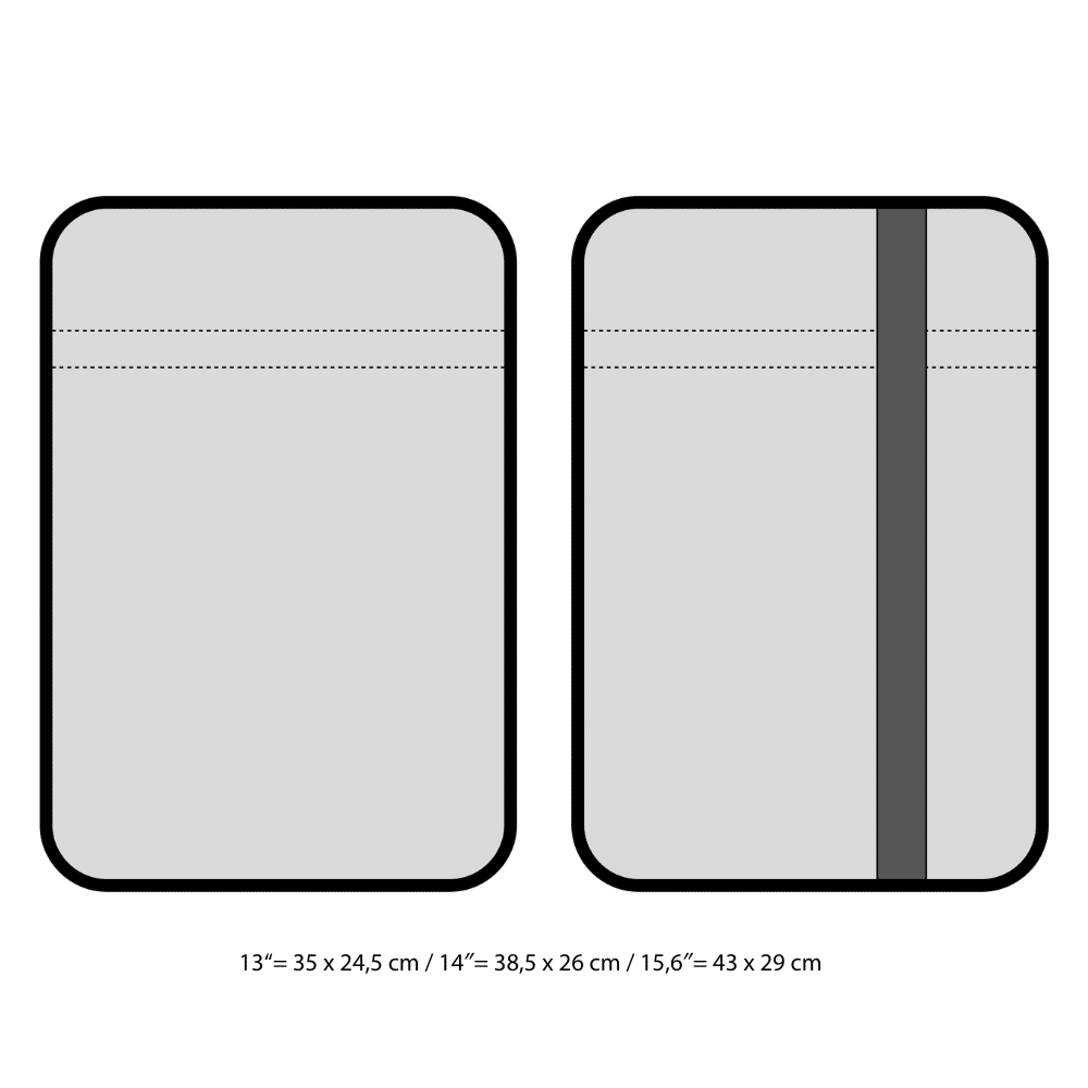 13“= 35 x 24,5 cm / 14″= 38,5 x 26 cm / 15,6″= 43 x 29 cm