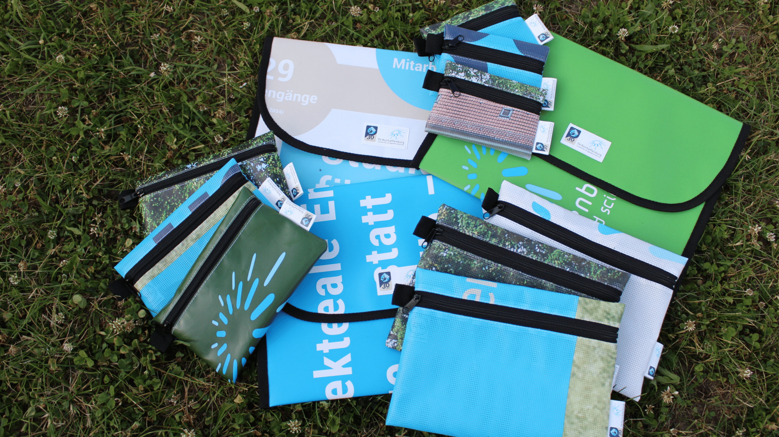 Die ausgedienten Banner, Planen und Roll-ups der TH Aschaffenburg wurden zum Rohmaterial für eine neue Linie handgefertigter Werbemittel: Shopper und Turnbeutel, kleine Fahrradtaschen, Federmäppchen und Schlüsselanhänger. Kein Produkt gleicht dem anderen jedes Stück zeigt eine einzigartige Kombination aus Motiven der bisherigen Werbematerialien der Hochschule, und genau das macht sie so besonders.